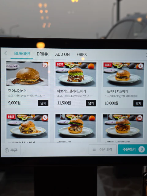 와동버거의 특징 중 하나가 키오스크 주문 시스템이에요.